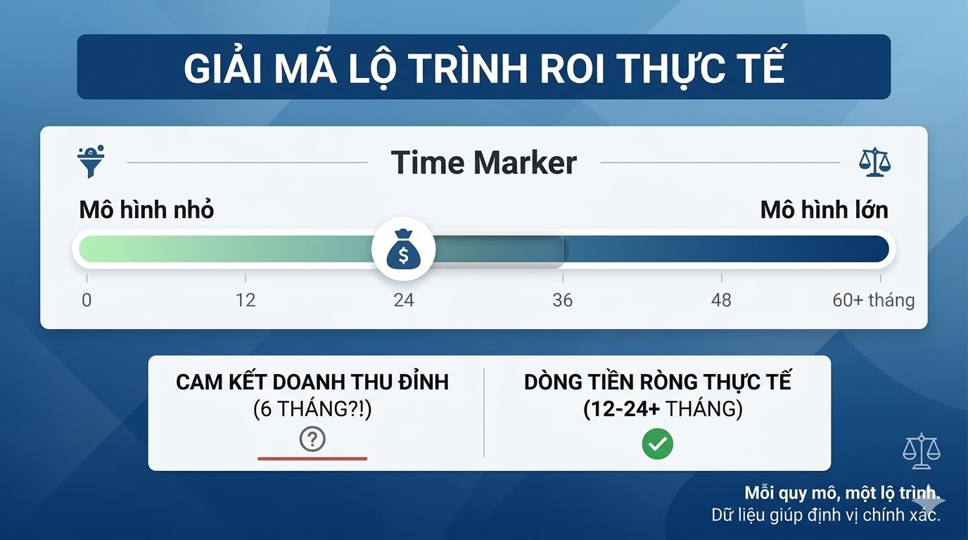 "6 tháng hoàn vốn" chỉ là một lời hứa hào nhoáng trong nhượng quyền. ROI thực tế biến thiên theo quy mô, đòi hỏi dữ liệu minh bạch để nhà đầu tư làm chủ cuộc chơi.
